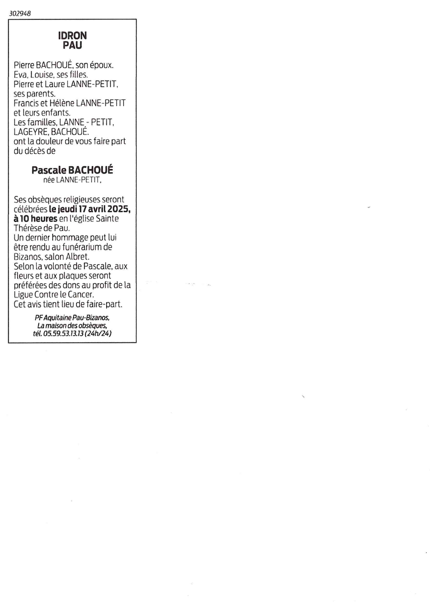 Madame Pascale BACHOUÉ née LANNE-PETIT