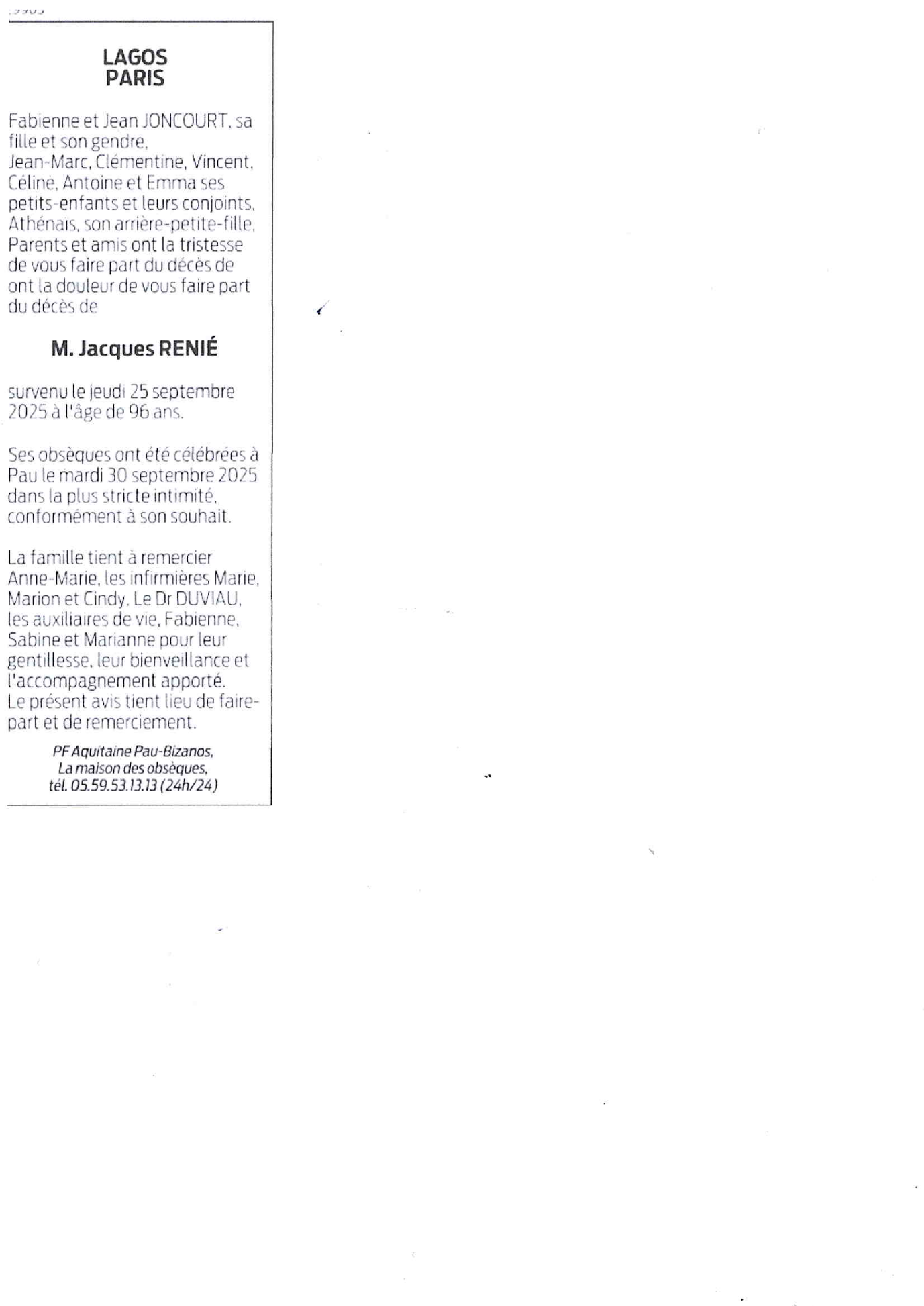 Décédé à Pau (64000, France) le jeudi 25 septembre 2025 à l'âge de 96 ans