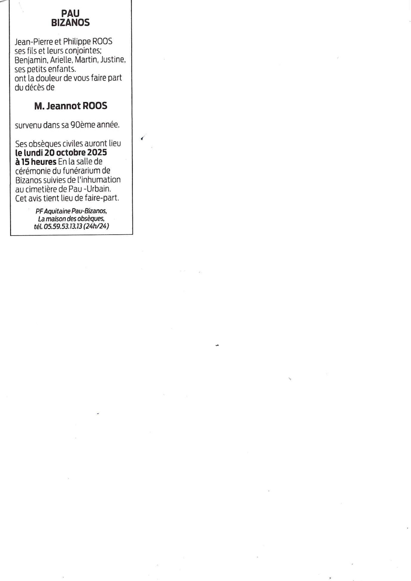 Décédé à Uzos (64110, France) le mardi 14 octobre 2025 à l'âge de 89 ans