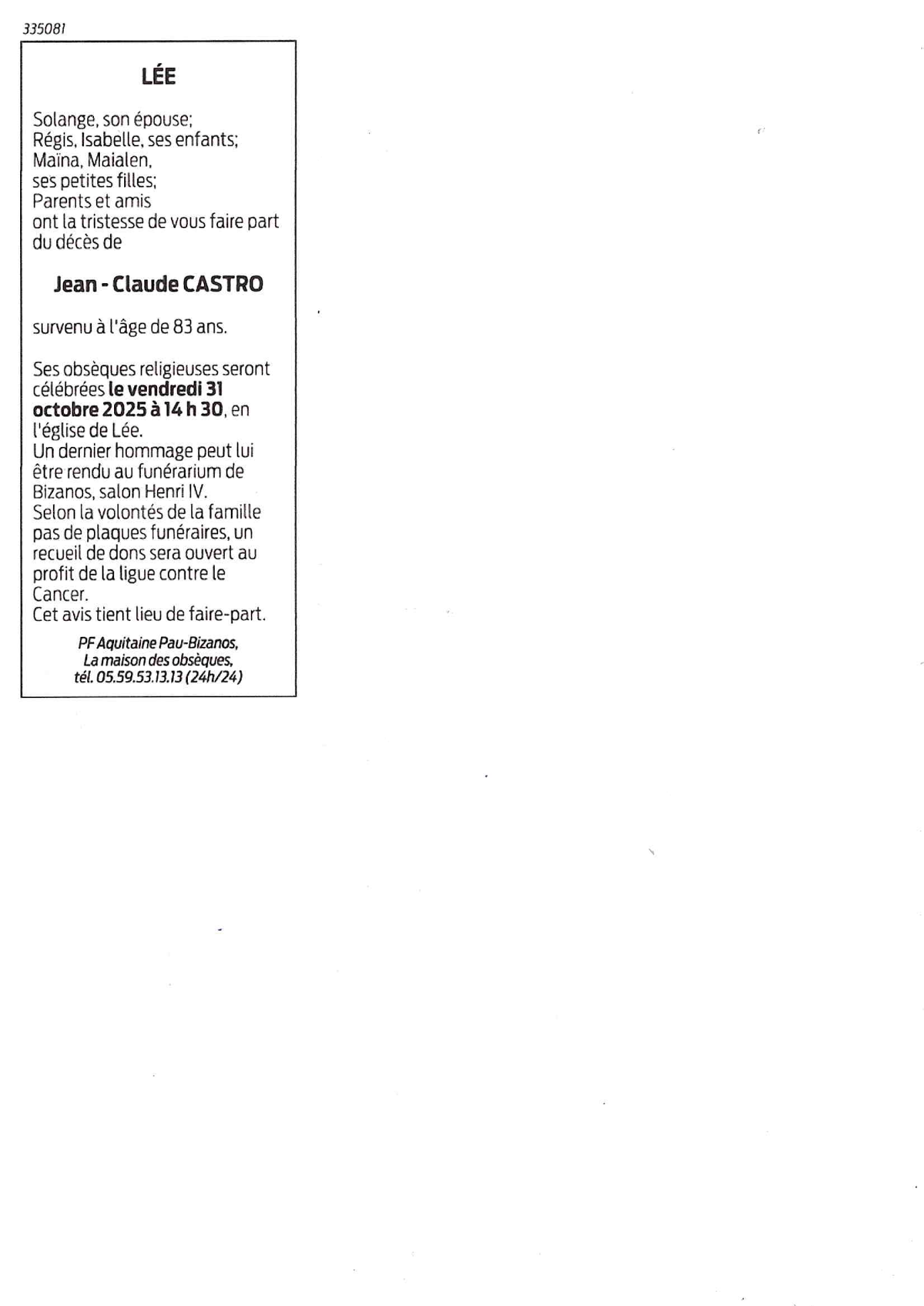 Décédé à Pau (64000, France) le mardi 28 octobre 2025 à l'âge de 83 ans