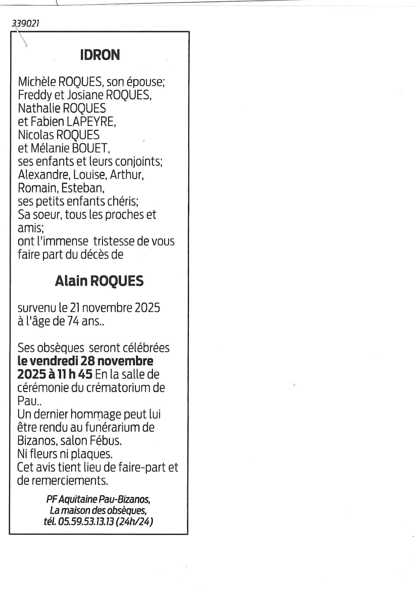Décédé à Idron (64320, France) le vendredi 21 novembre 2025 à l'âge de 74 ans