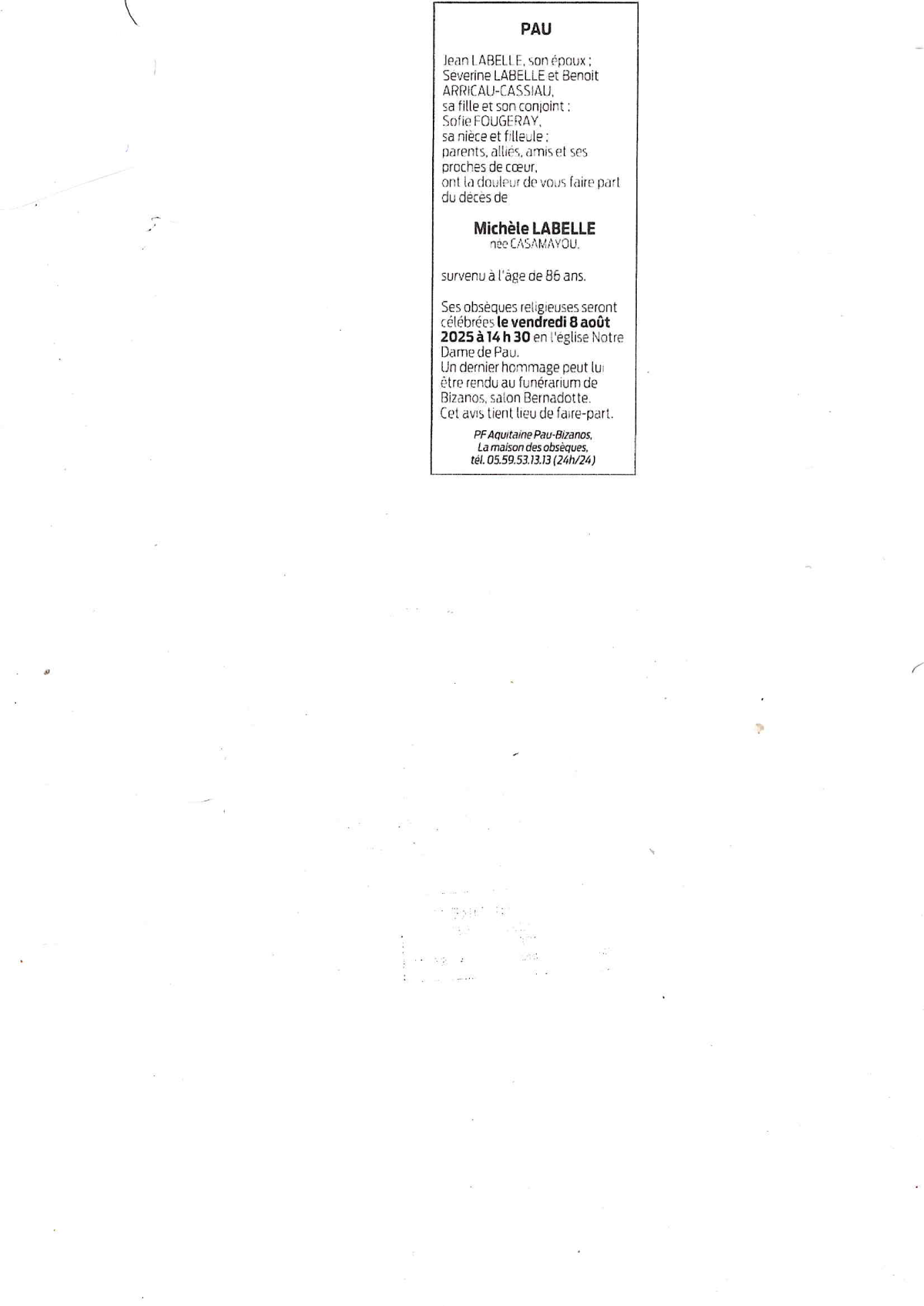 Décédée à Pau (64000, France) le vendredi 1 août 2025 à l'âge de 86 ans