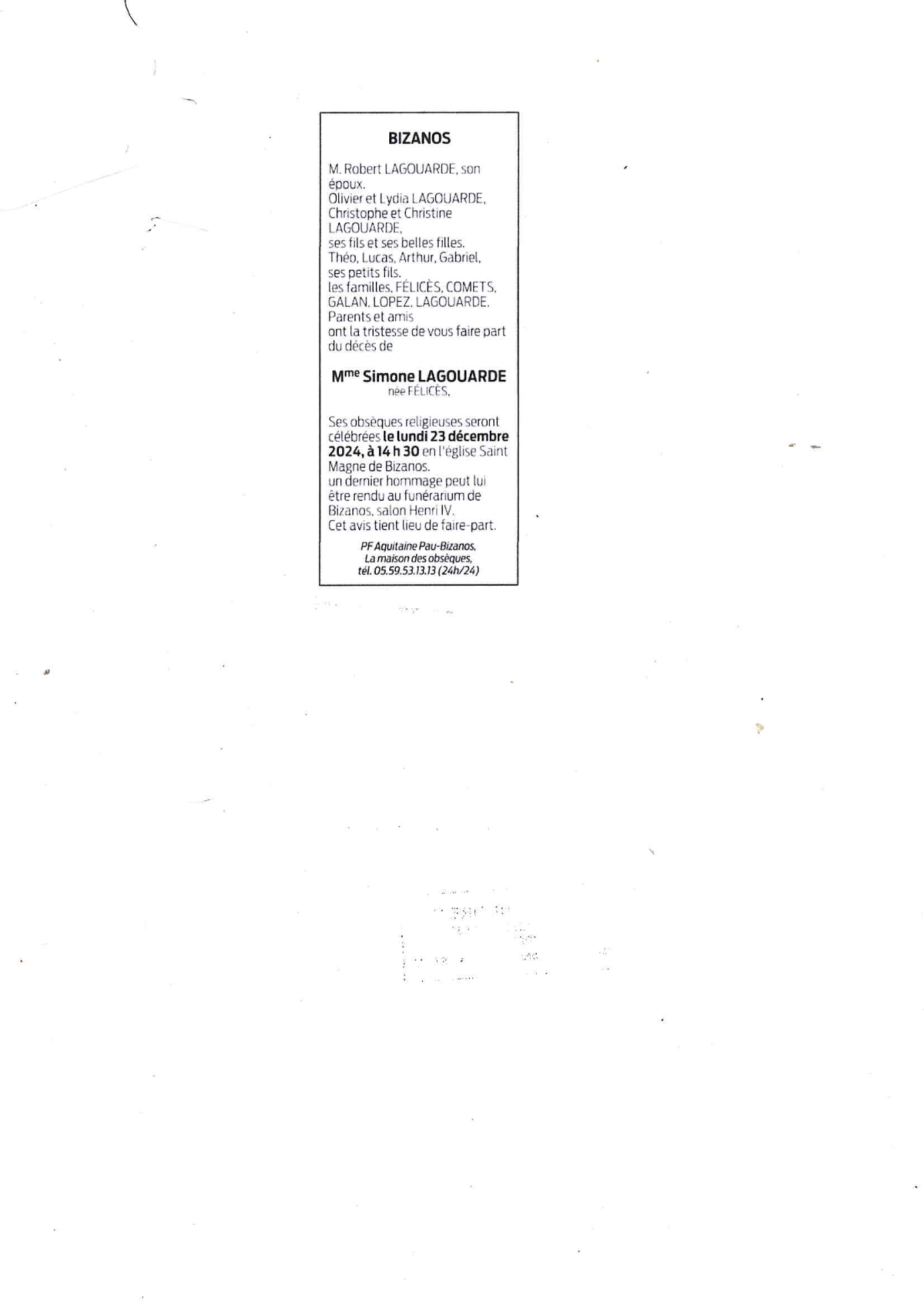 Décédée à Pau (64000, France) le mercredi 18 décembre 2024 à l'âge de 80 ans