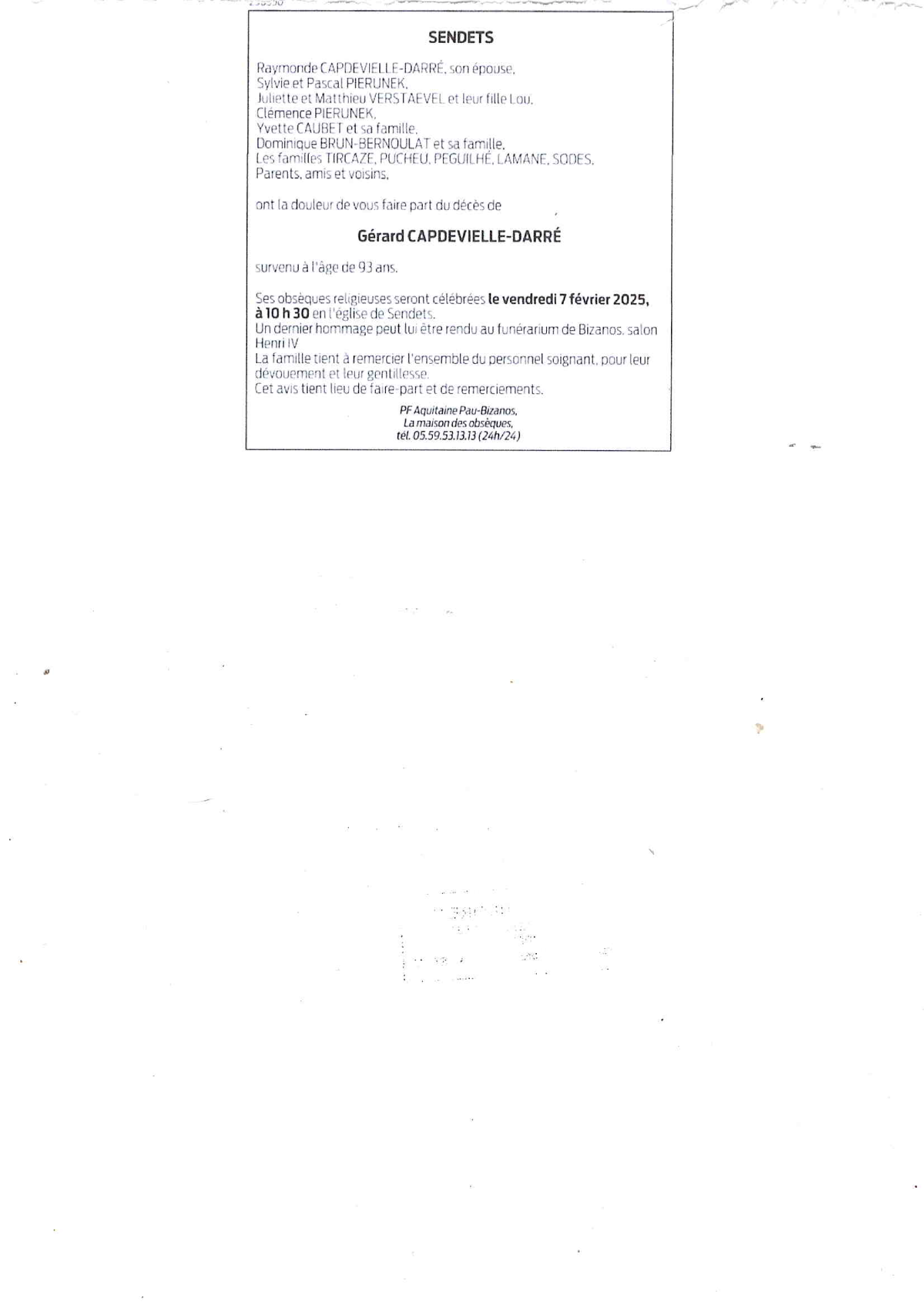 Décédé à Sendets (64320, France) le mardi 4 février 2025 à l'âge de 93 ans