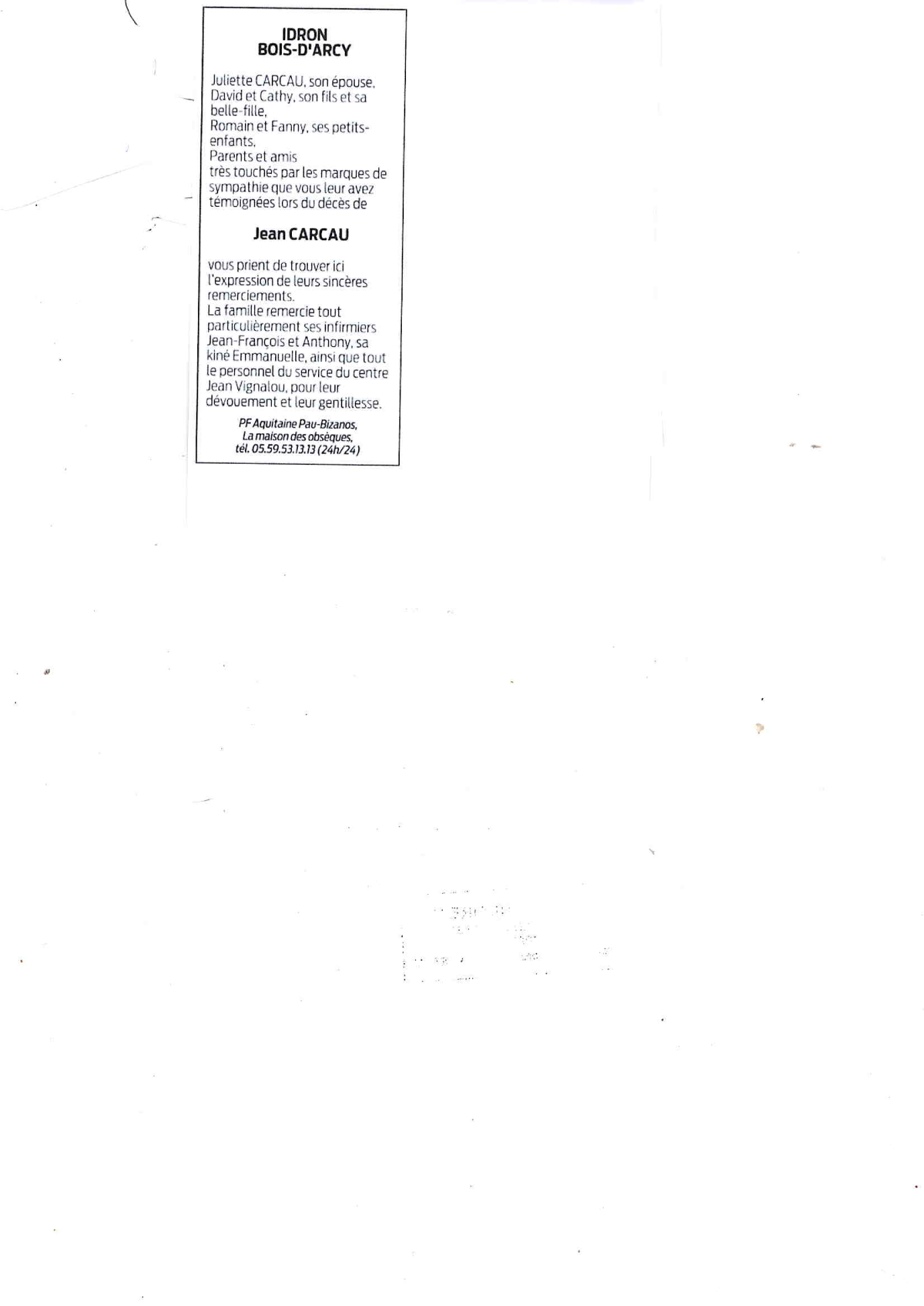 Annonce de remerciement