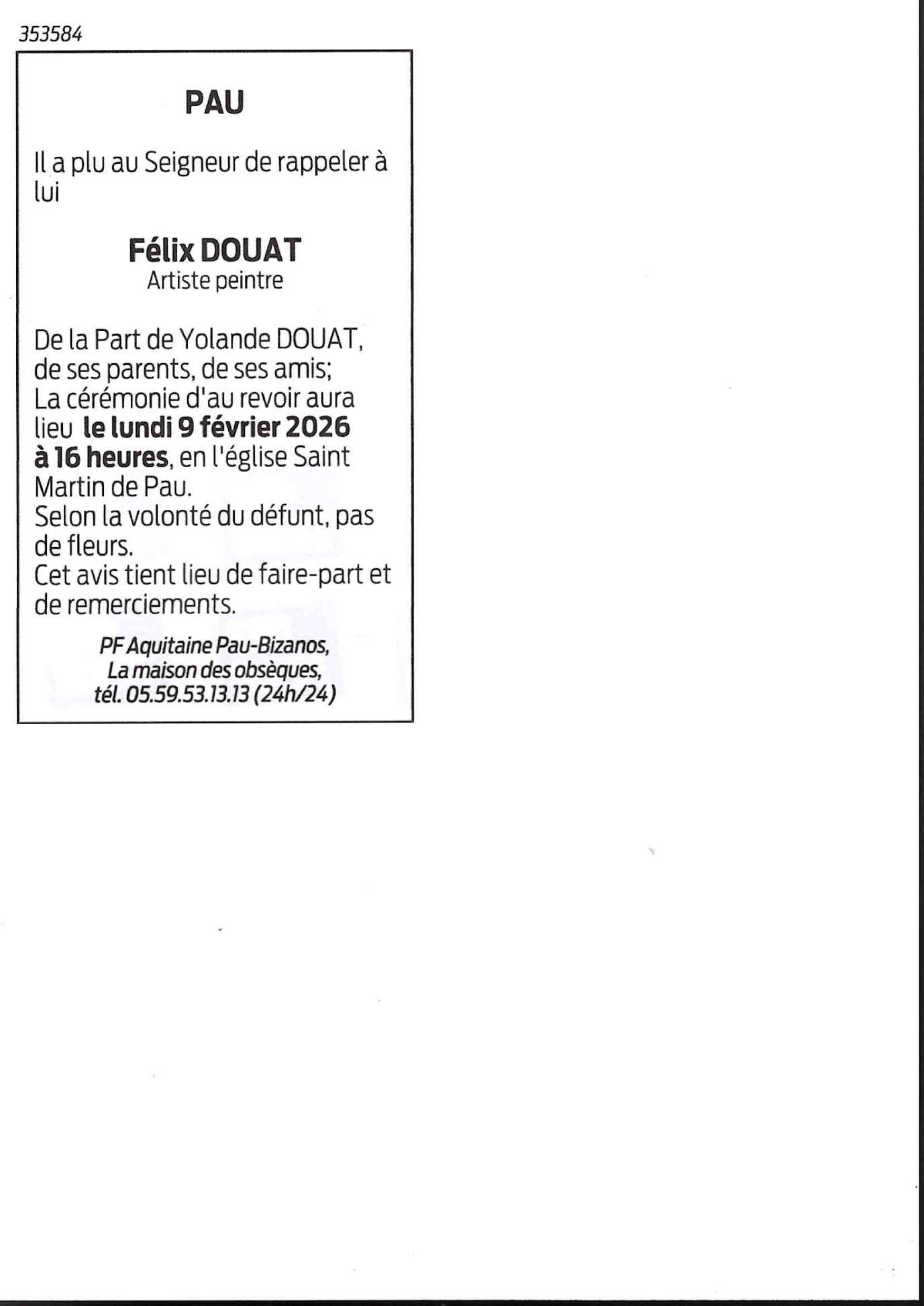 Décédé à Pau (64000, France) le lundi 2 février 2026 à l'âge de 90 ans