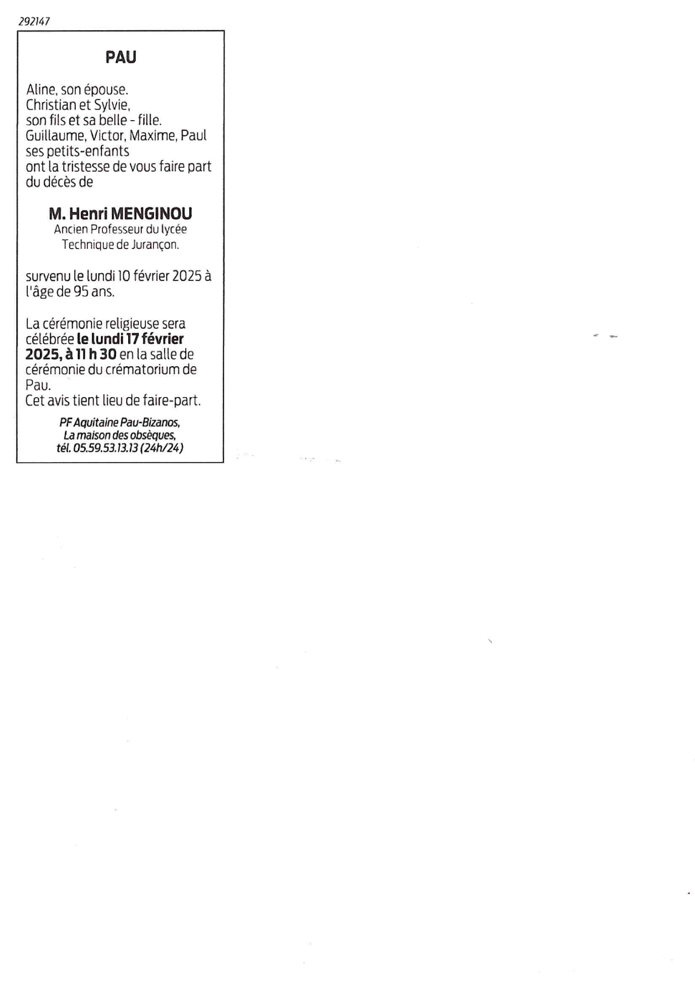 Décédé à Pau (64000, France) le lundi 10 février 2025 à l'âge de 95 ans