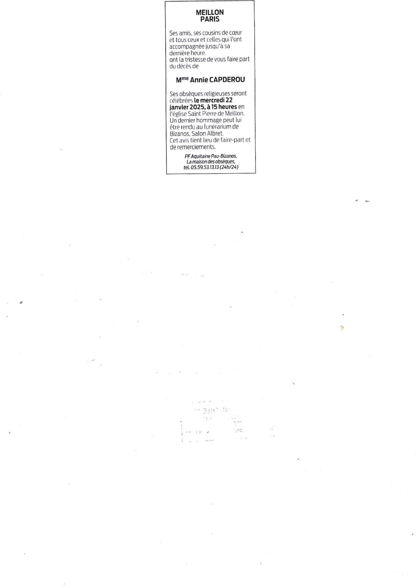 Décédée à Pau (64000, France) le jeudi 16 janvier 2025 à l'âge de 92 ans