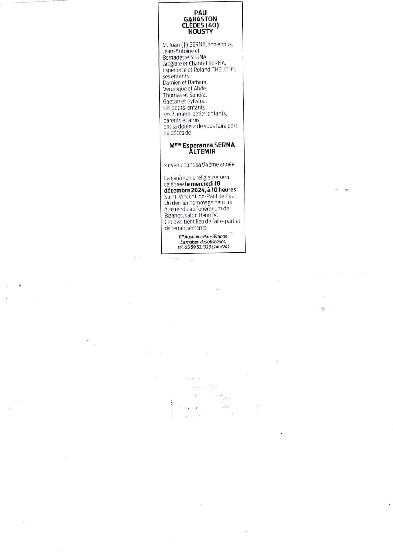 Décédée à Pau (64000, France) le samedi 14 décembre 2024 à l'âge de 93 ans