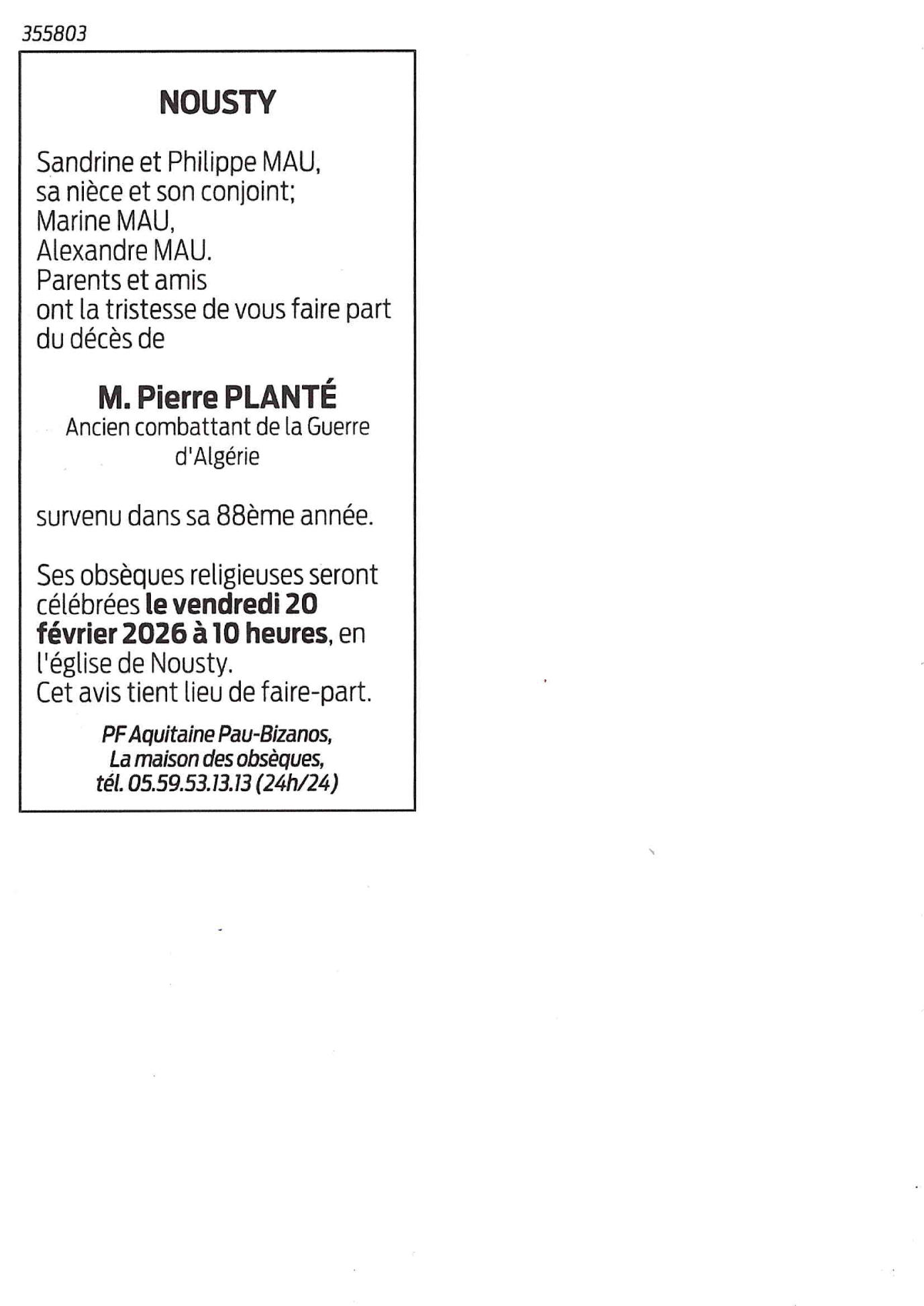 Décédé à Nousty (64420, France) le samedi 7 février 2026 à l'âge de 87 ans
